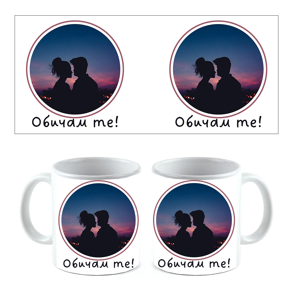 *На всяка визуализация е показан печатния файл, и двете страни на чашата.