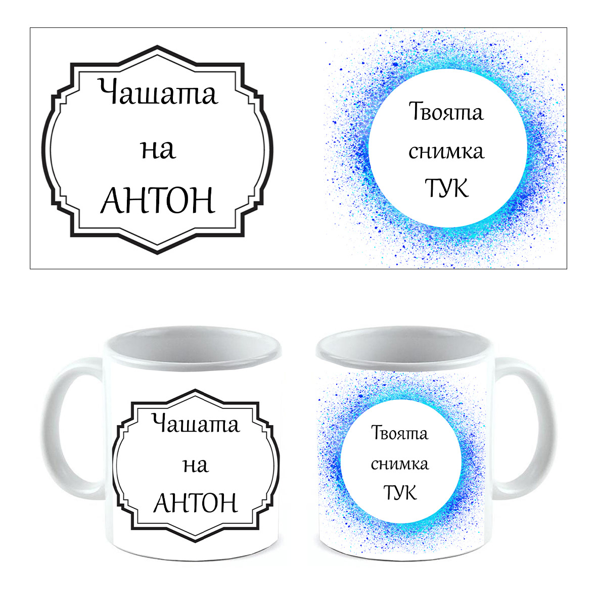 Различни дизайни с място за Вашата снимка и възможност за текст (според дизайна).